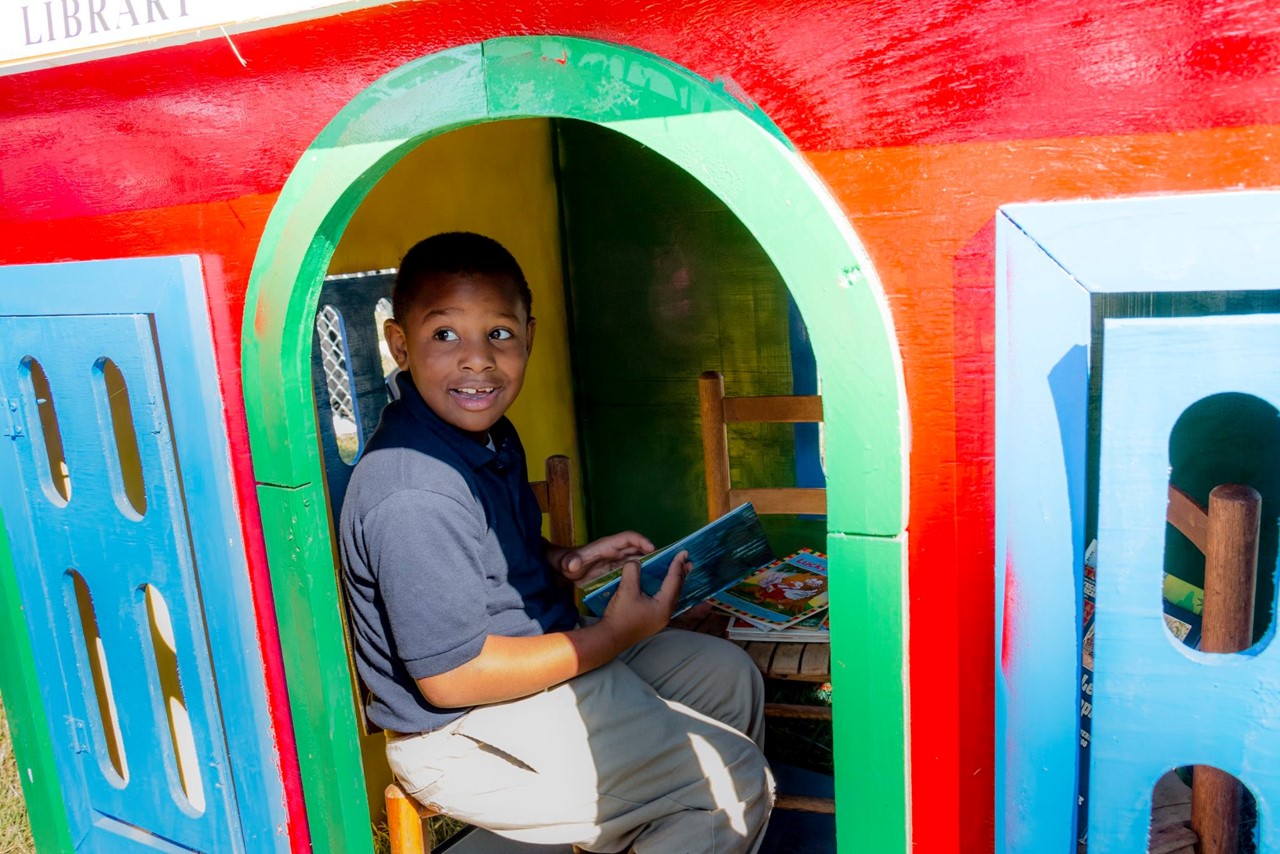 Weaver Street Tot Lot Tot lot under construction Child reading at tot lot Kids playing at tot lot